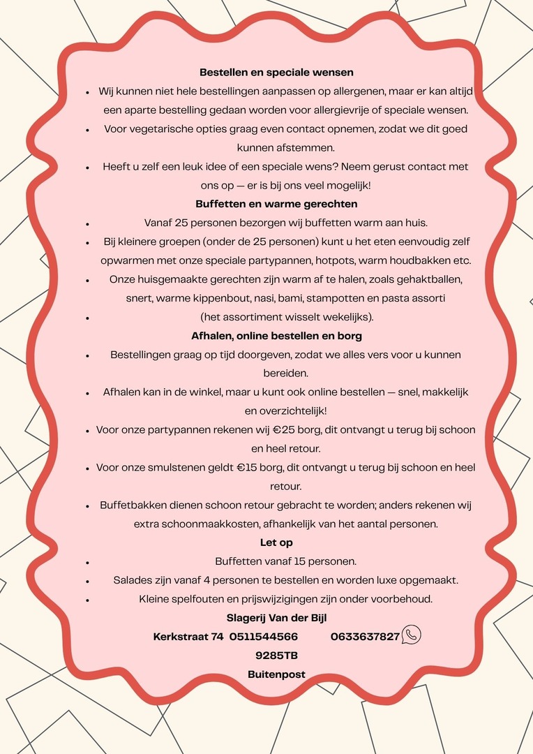 Het bestellen is ook nog eens super eenvoudig: met een paar klikken zet u de heerlijke hapjes bij u klaar, zonder gedoe of stress. Trakteer uzelf en uw gasten op iets unieks en laat van uw bijeenkomst een onvergetelijk moment worden – een ervaring om samen van te genieten, vol smaak en stijl!