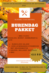 Maak jouw barbecue bijzonder met de specialiteiten van Uw Slager Van der Bijl. Of je nu gaat voor een traditioneel spiesje of menu of wil je liever culinair uitpakken met een bijzonder groot stuk vlees die meerdere uren op de barbecue gegaard moet worden. Uw Slager Van der Bijl heeft alles in huis om van jouw barbecue een waar feest te maken. We laten u zorgeloos genieten en maken uw barbecue compleet met frisse salades, knapperig stokbrood en smaakvolle sauzen.
